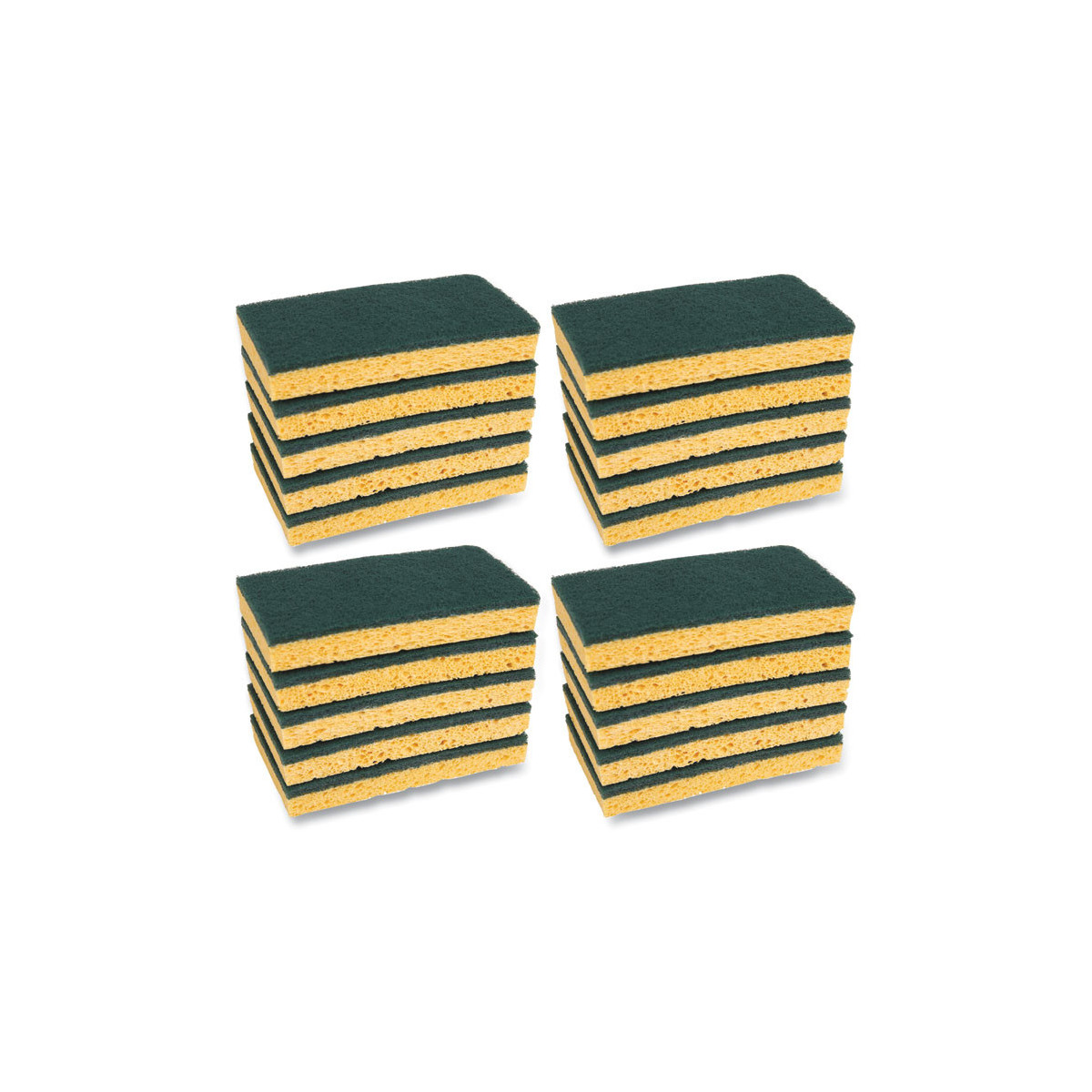 Dual-action cleaning sponge with absorbent cellulose sponge on one side and medium-duty nylon scrub pad on the other. Dual-purpose general cleaning tool for kitchens, bathrooms, offices, and industrial settings. Makes cleaning faster and easier by carrying cleaning solutions and water to the work surface. Use the softer cellulose side to soak up spills and wipe clean. The rougher, textured side works well on tougher stains and surfaces. Convenient size for scrubbing tough stains or soaking up spills. Individually wrapped.