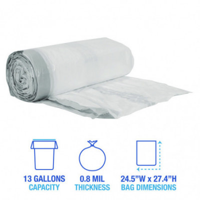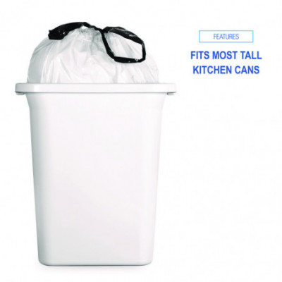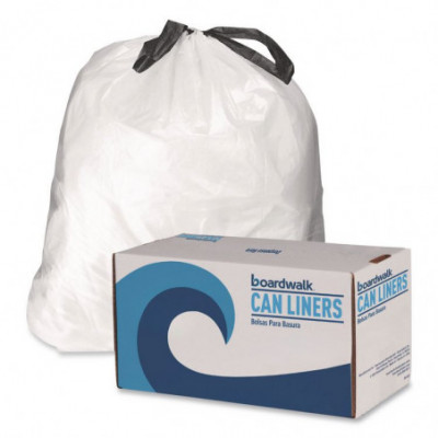 Boardwalk's 13-gallon drawstring kitchen bags feature a highly visible black draw-tape closure for easy opening and secure sealing. Durable bag and closure keep contents secure and contained. These plastic trash bags fit in most tall kitchen waste receptacles and are designed to maximize can capacity. Can be tied around the top or fastened around the top rim of can. Liners offer reliable, everyday waste management.