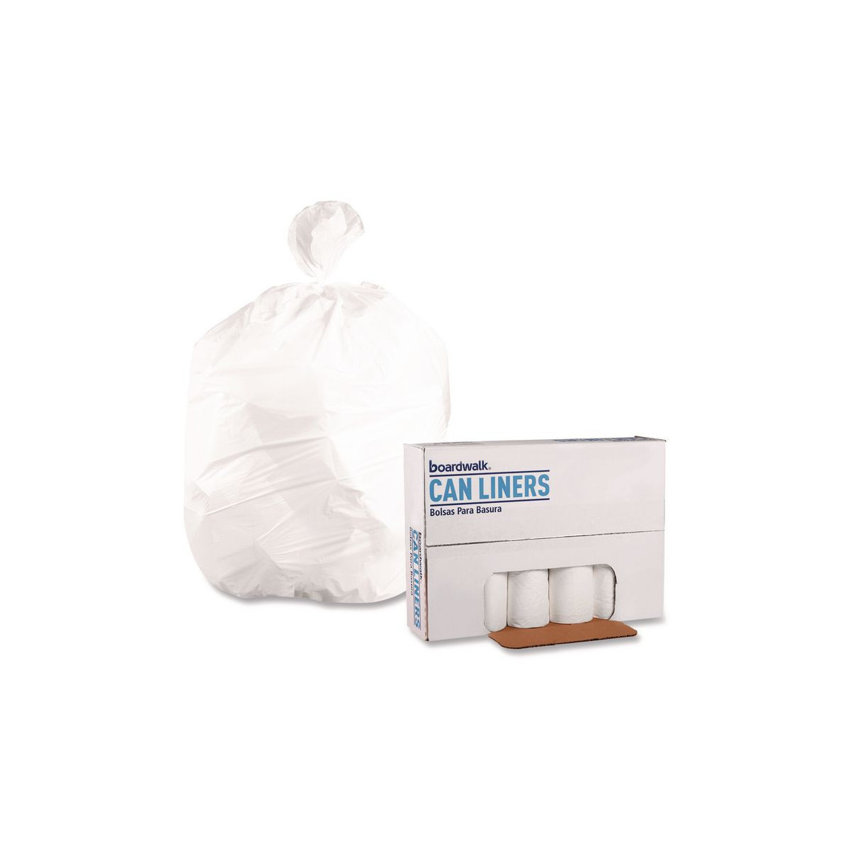 High-density polyethylene liners provide superior performance at an affordable price. Made from 100% prime resin for added strength and durability. The sturdy, star-seal bottom helps prevent leaks and provides even weight distribution for easy removal from receptacle. Coreless perforated rolls are easy to use and great for dispensing on the go. A quality can liner that provides trusted waste collection for light-duty applications.