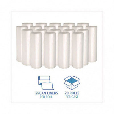 High-Density Can Liners, 30 gal, 8 mic, 30" x 36", Natural, Perforated Roll, 25 Bags/Roll, 20 Rolls/Carton