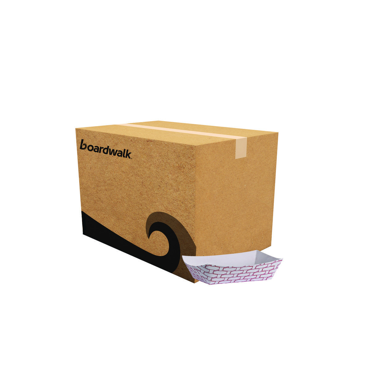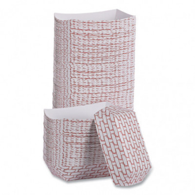 Boardwalk® paper food baskets are an excellent alternative to disposable dinnerware. These baskets are composed of moisture-resistant clay-coated, sturdy paper. The flexible design with high walls to prevent spills is ideal for serving meals to-go at restaurants, cafeterias, food trucks, catering, and special events. Available in a classic, attractive, red and white design to suit all of your disposable dining needs.