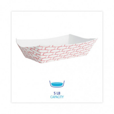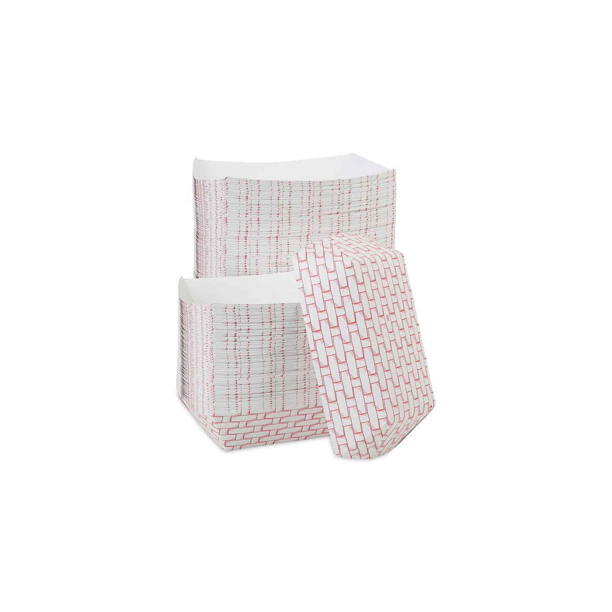 Boardwalk® paper food baskets are an excellent alternative to disposable dinnerware. These baskets are composed of moisture-resistant clay-coated, sturdy paper. The flexible design with high walls to prevent spills is ideal for serving meals to-go at restaurants, cafeterias, food trucks, catering, and special events. Available in a classic, attractive, red and white design to suit all of your disposable dining needs.