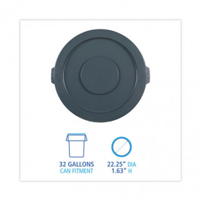 Lids for 32 gal Waste Receptacle, Flat-Top, Round, Plastic, Gray