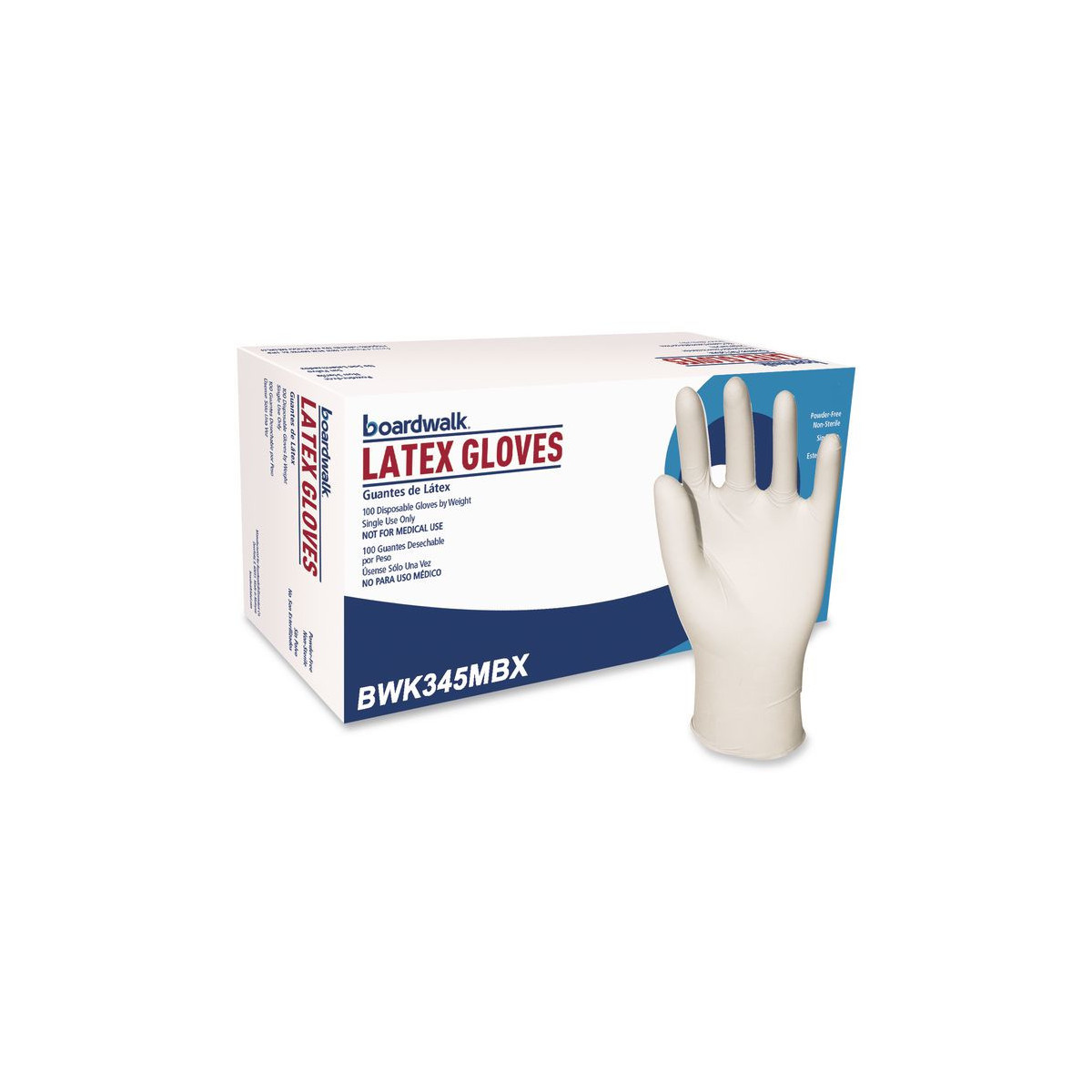 Boardwalk General-Purpose Latex Gloves are ideal gloves for food handling and preparation, general assembly, and manufacturing work. Can also be used to prevent the spread of germs and in other non-medical applications requiring dexterity. Ambidextrous. Non-sterile. Powder-free. Rolled cuff for easy-on, easy-off. The simple, self-dispensing box makes grabbing a fresh pair quick and easy. Single-use, disposable gloves.