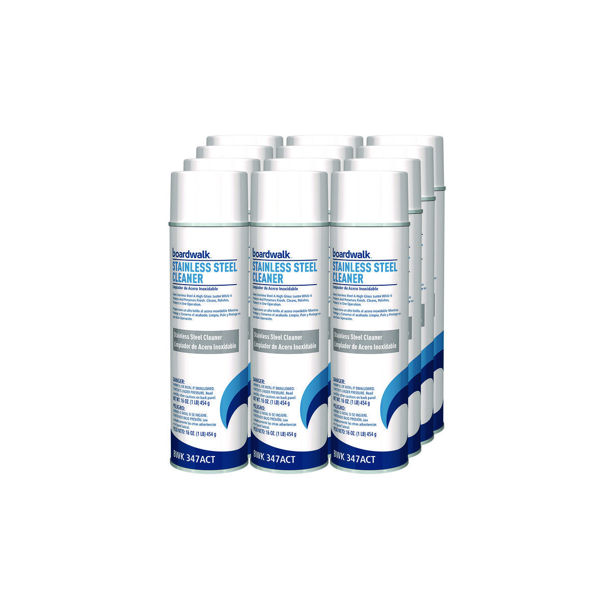Stainless Steel Cleaner and Polish, Water-in-Oil Based, Lemon Scent, 18 oz Aerosol Spray, 12/Carton