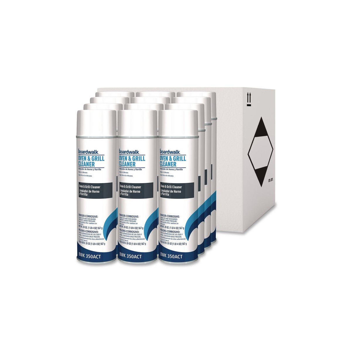 Boardwalk Oven and Grill Cleaner tackles tough, baked-on grease left behind with less manual scrubbing. Simply spray the surface and wipe clean. The cleaner can also be used on pots, pans, cooking utensils, and other stainless steel surfaces. Convenient aerosol spray makes application at any angle easy. The cleaner removes carbon, debris, grease, grime, oil-based soil, organic matter, smoke, and film from surfaces.