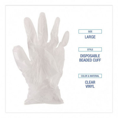 Equip your workspace with these vinyl exam gloves. These gloves are powder-free and 100% latex-free. Ideal for medical, lab or food-handling environments. Product offers reliable protection without compromising tactile sensitivity. Whether using for cleaning, assembling or patient care, these durable gloves streamline tasks while minimizing contamination risks. Practical staple in safety-conscious facilities. Can be used in doctors' and dentists' offices and for EMS personnel when a sterile glove is not required.