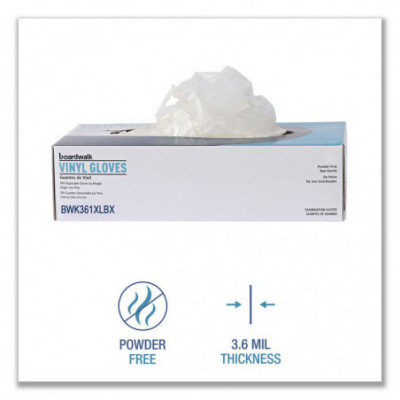 Equip your workspace with these vinyl exam gloves. These gloves are powder-free and 100% latex-free. Ideal for medical, lab or food-handling environments. Product offers reliable protection without compromising tactile sensitivity. Whether using for cleaning, assembling or patient care, these durable gloves streamline tasks while minimizing contamination risks. Practical staple in safety-conscious facilities. Can be used in doctors' and dentists' offices and for EMS personnel when a sterile glove is not required.