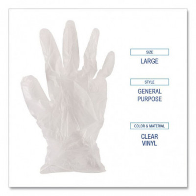 General Purpose Vinyl Gloves, Powder-Free, Large, 2.6 mil Thick, 9.5" Long, Clear, 100/Box, 10 Boxes/Carton