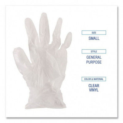 General Purpose Vinyl Gloves, Powder-Free, Small, 2.6 mil Thick, 9.5" Long, Clear, 100/Box