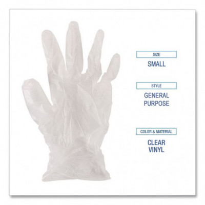 Convenient vinyl general purpose powder free gloves provide excellent tactile sensitivity and hand protection. These gloves are ideal for users who are at risk of becoming sensitive to latex protein allergens. Quick and easy to dispense and put on. Safe for food contact applications. Gloves offer unparalleled economy, functionality and value. Box is also a dispenser with perforated, removeable opening on top that allows single glove dispensing.