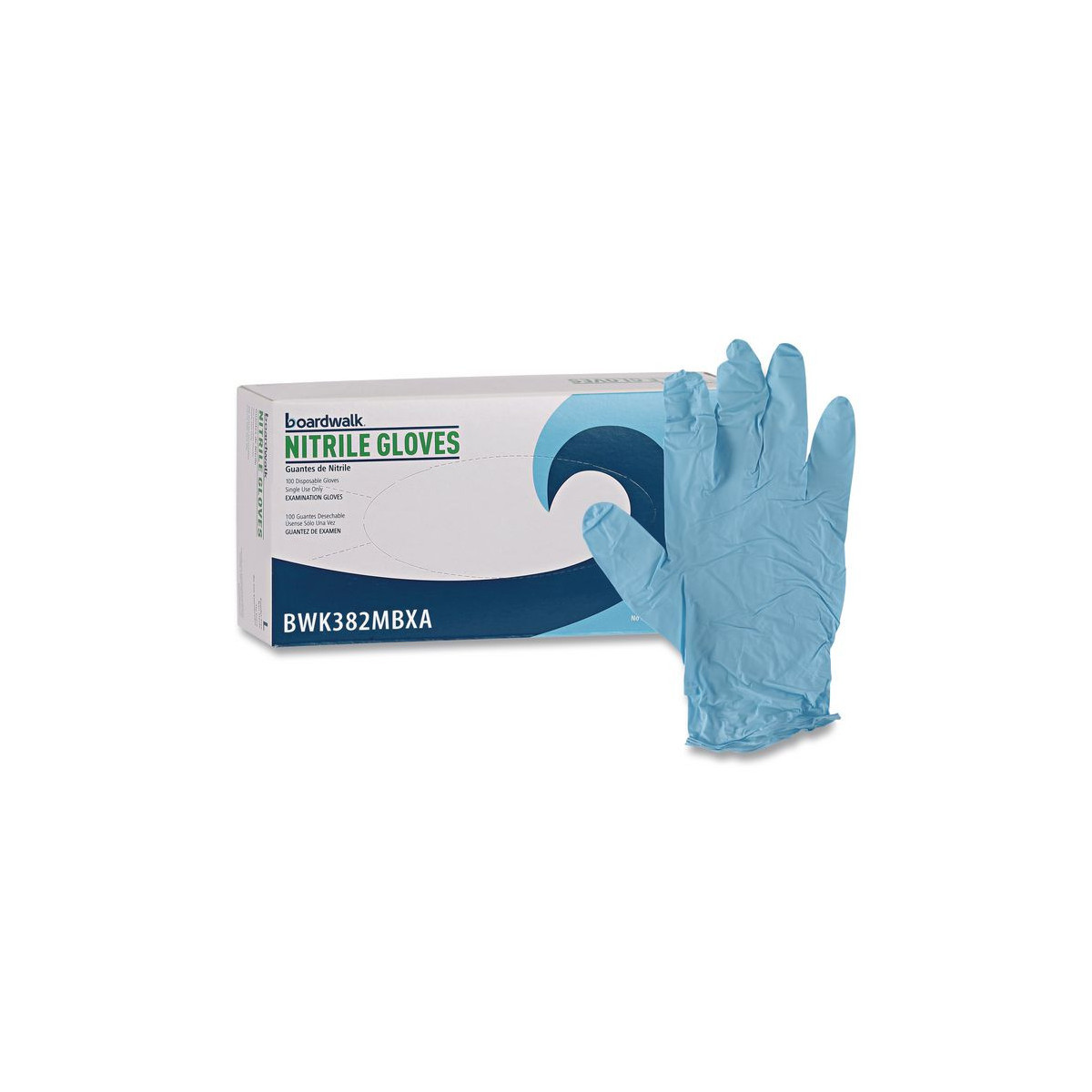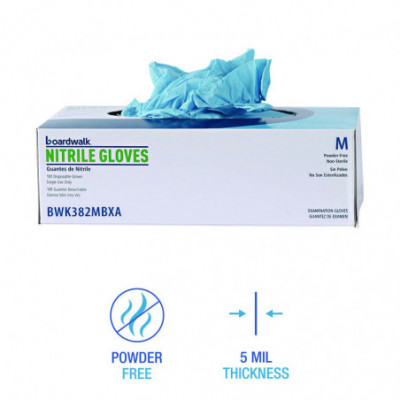 Disposable Examination Nitrile Gloves, Powder-Free, Medium, 5 mil Thick, 9.5" Long, Blue, 100/Box