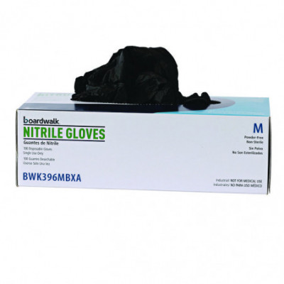 396 Series Disposable General-Purpose Nitrile Gloves, Powder-Free, Medium, 4.4 mil Thick, 9.5" Long, Black, 100/Box