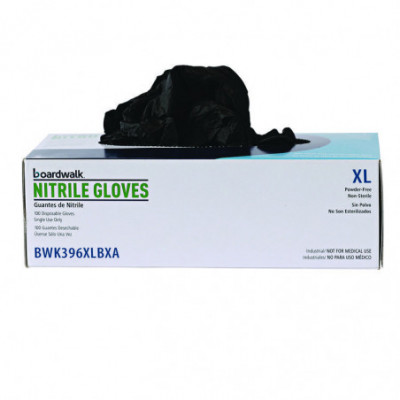 396 Series Disposable General-Purpose Nitrile Gloves, Powder-Free, X-Large, 4.4 mil Thick, 9.5" Long, Black, 100/Box