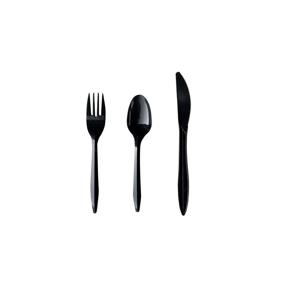 Three-Piece Polypropylene Cutlery Kit, Mediumweight, Fork/Knife/Spoon, Plastic, Black, 250/Carton