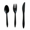 Three-Piece Polystyrene Cutlery Kit, Mediumweight, Fork/Knife/Spoon, Plastic, Black, 250/Carton