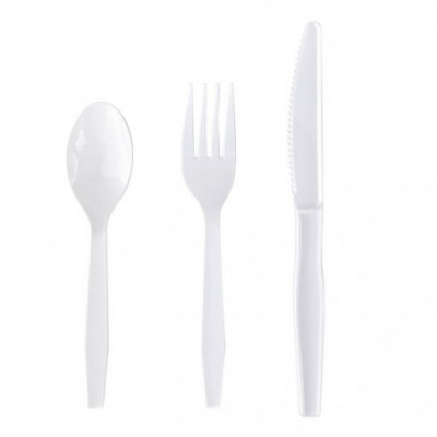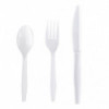 Three-Piece Polystyrene Cutlery Kit, Heavyweight, Fork/Knife/Spoon, Plastic, White, 250/Carton