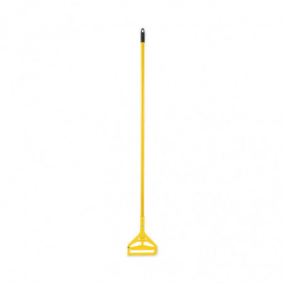 Mop kit includes everything you need to get started mopping, a strong, quick change handle and two quality, looped-end, blended fiber mop heads. The absorbent, medium, blue mop heads are machine washable for long-term usage. Great, all-purpose yarn is suitable for any cleaning job on a variety of indoor floor surfaces. The durable, 60", yellow handle is made from a combination of strong metal and polypropylene, with a plastic, quick change head that makes cleaning easy.