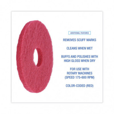 More value for your money with a versatile floor buffing pad that cleans when wet and buffs when dry. Made from non-woven polyester fibers, the buffing pad cleans and removes scuff marks while polishing floors to a high gloss. Color-coded for easy job identification. Quality pad constructed from durable fibers that require less replacement. For use with Floor Machines (Speed of 175 to 600 RPM).
