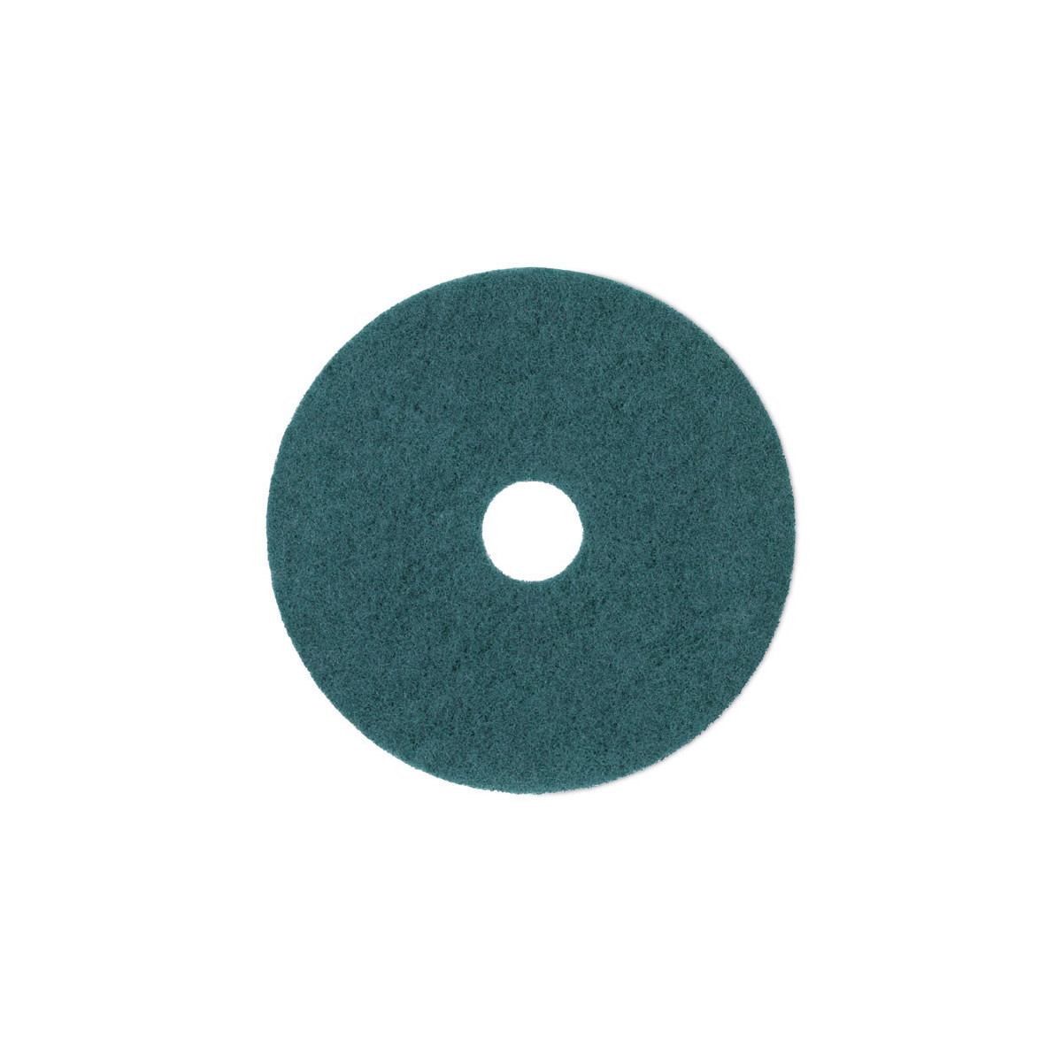 Extra heavy-duty scrubbing pad attaches to a rotary machine to remove dirt, spills, and scuffs. Easily scrub floors by mounting the pad onto the machine and let the powerful scrubbing pad go to work, removing heavy traffic and build-up with ease. The surface is cleaned, removed of debris, and ready for recoating if needed. For use with Rotary Machine Speed of 175 to 600 RPM. Color-coded for easy job identification.