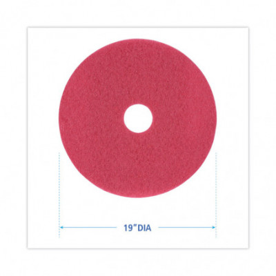 Buffing Floor Pads, 19" Diameter, Red, 5/Carton
