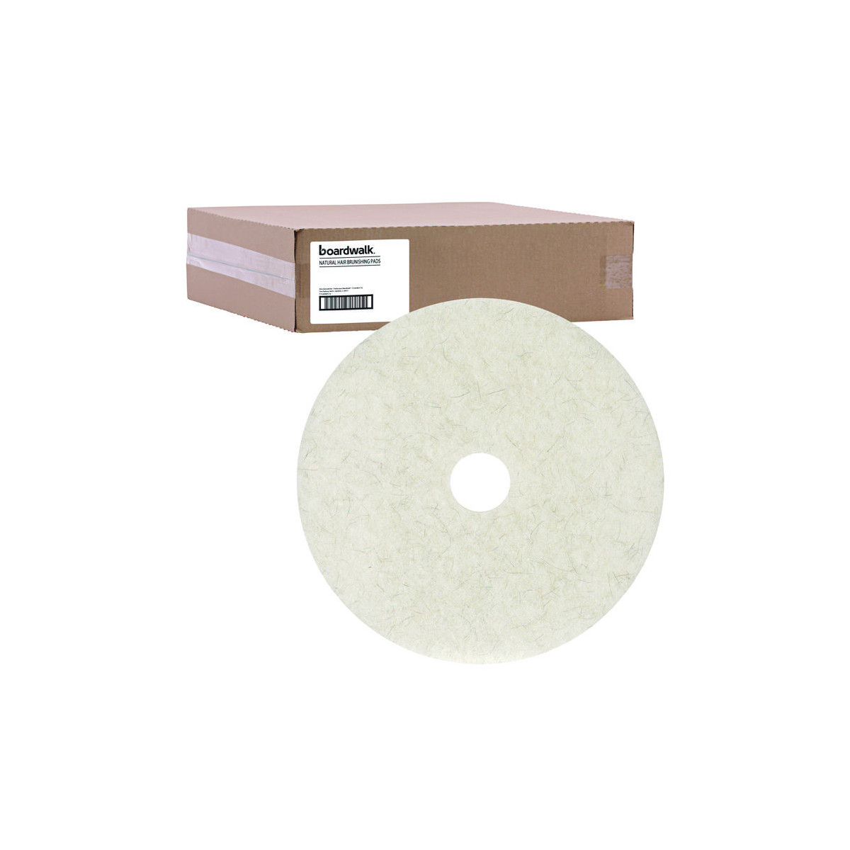 Natural Burnishing Floor Pads, 21" Diameter, White, 5/Carton