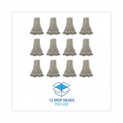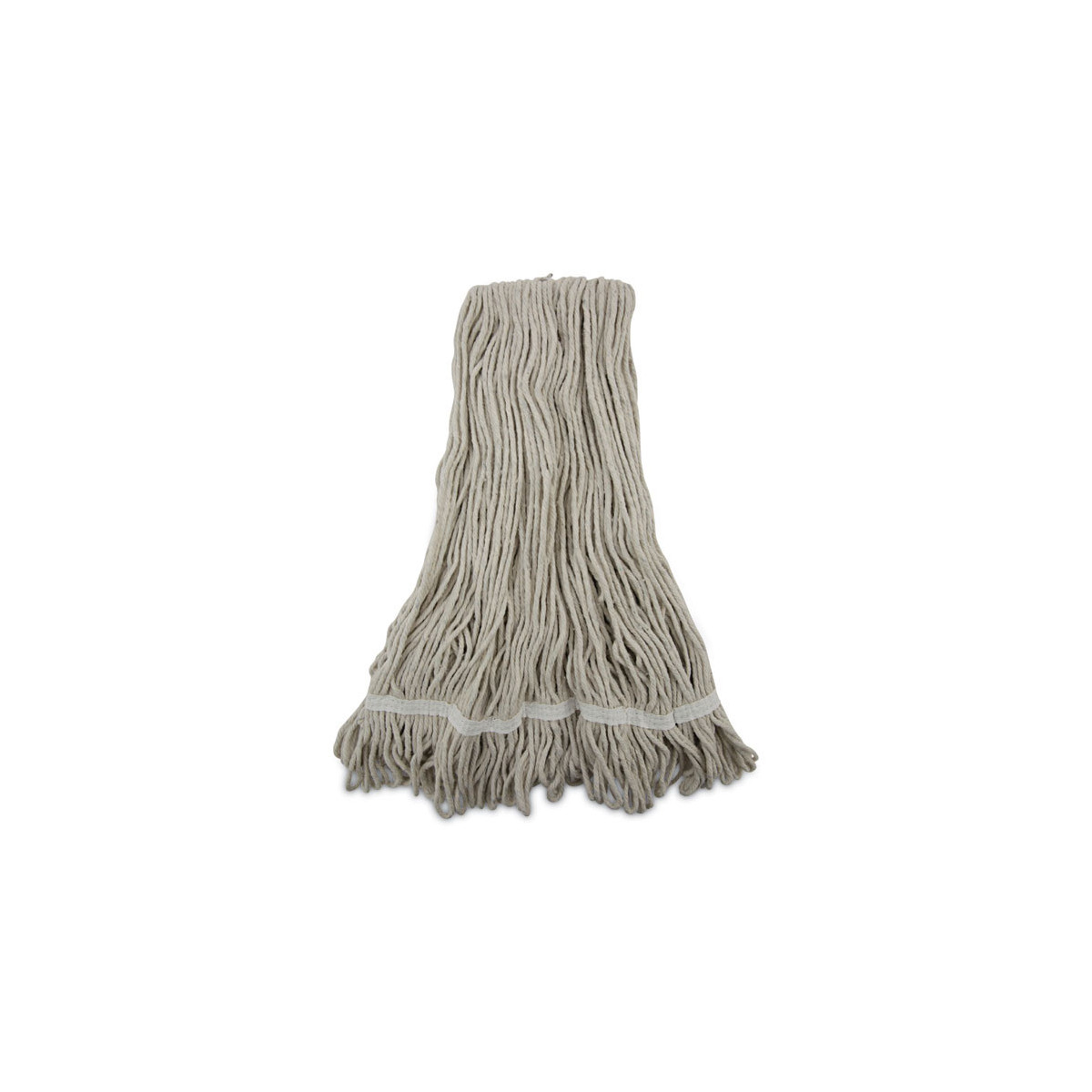 This sturdy mop head is made with premium four-ply yarn and a heavy-duty, polyester tape headband. Constructed with a looped-end design that minimizes less lint, fraying, and unraveling. Built to be durable, the double-sewn tailband prevents tangles and provides more floor coverage. Made from high-quality fiber. Great for general cleaning or floor finishing. For use with clamp style mop handles, which are sold separately.