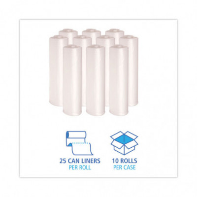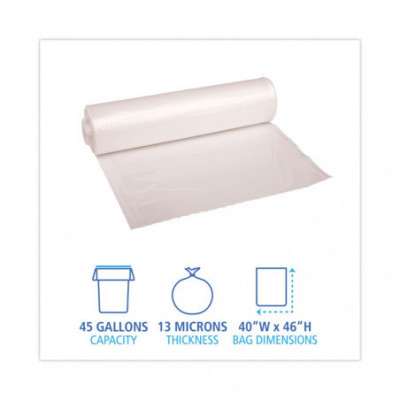 High-Density Can Liners, 45 gal, 13 mic, 40" x 46", Natural, Perforated Roll, 25 Bags/Roll, 10 Rolls/Carton