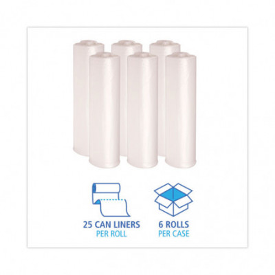 High-Density Can Liners, 45 gal, 19 mic, 40" x 46", Natural, Perforated Roll, 25 Bags/Roll, 6 Rolls/Carton