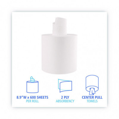 Upgrade your restroom with these center-pull towels. These strong and absorbent perforated towels deliver efficient hand-drying while helping to reduce waste with easy-to-use center-pull dispensing. Designed for cost-effective maintenance, each roll is coreless upon installation. An ideal choice for busy facilities seeking reliable and economical hygiene solutions.