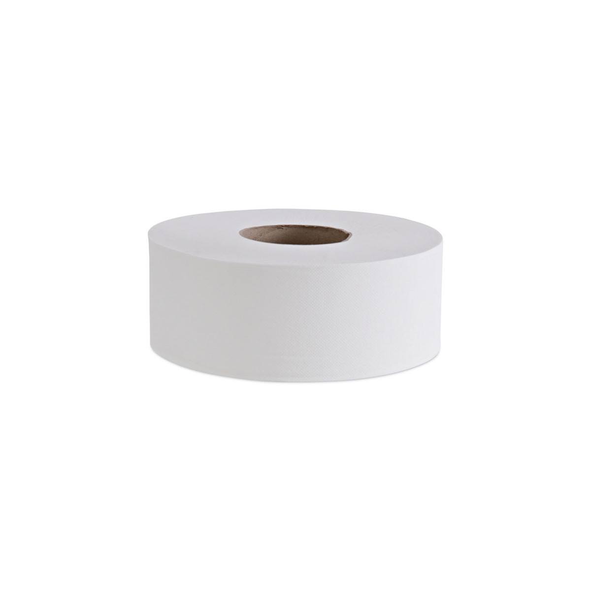 Soft, white toilet tissue is a perfect choice for high-traffic restrooms where there isn't always an attendant on-duty to replace the roll. Economical value size. The jumbo size tissue rolls ensure more feet per roll, resulting in fewer roll changes. Laminated for excellent strength and ply bonding. Safe for septic and sewer systems. The rolls are compatible with dispensers, which are sold separately.