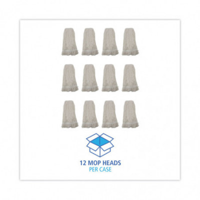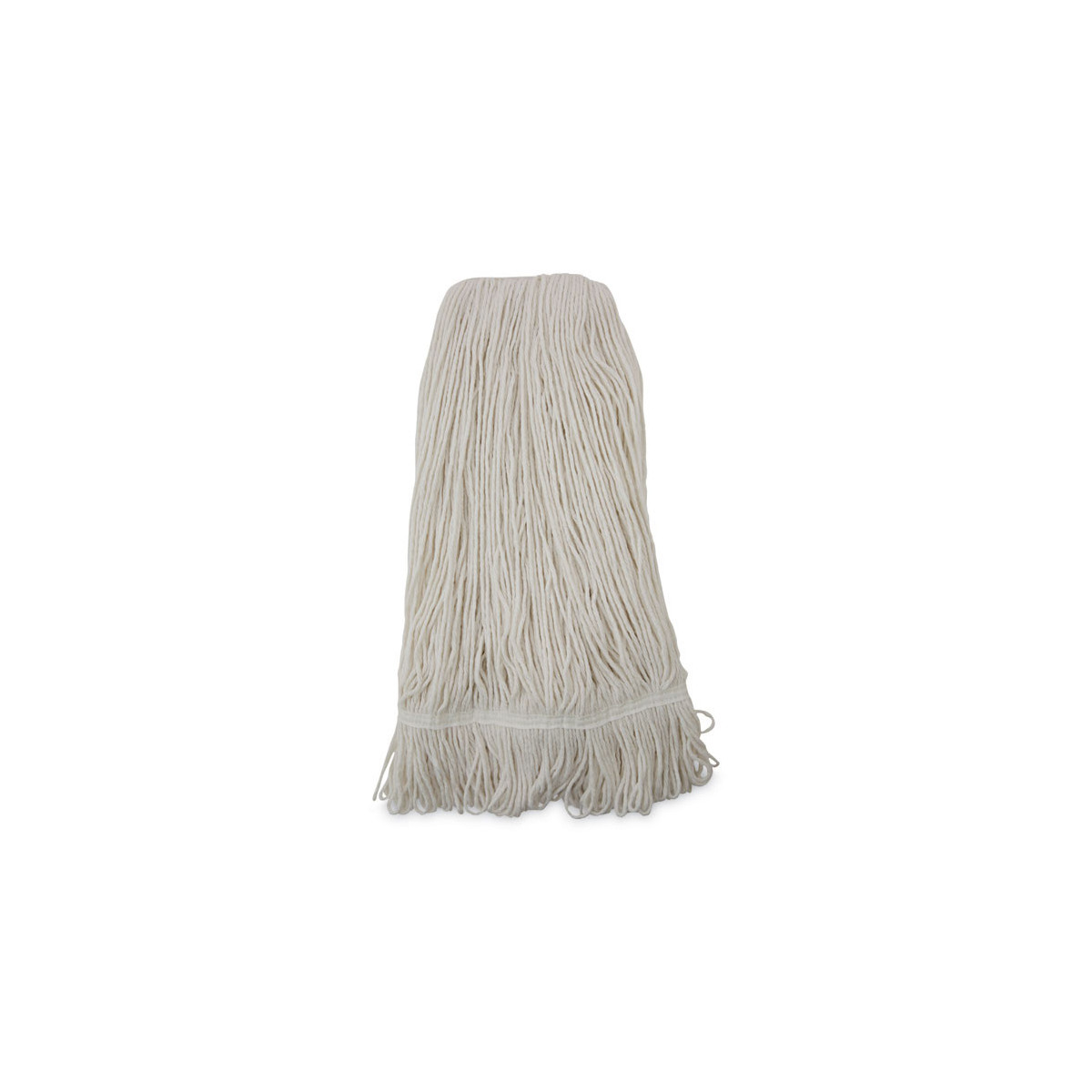 This sturdy mop head is made with premium four-ply yarn and a heavy-duty, polyester tape headband. Constructed with a looped-end design that minimizes less lint, fraying, and unraveling. Built to be durable, the double-sewn tailband prevents tangles and provides more floor coverage. Made from high-quality fiber. Great for general cleaning or floor finishing. For use with clamp style mop handles, which are sold separately.