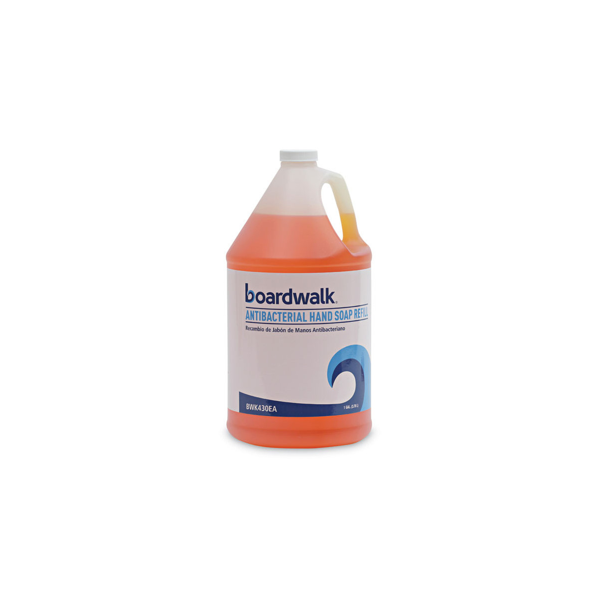When you're concerned about germs and illnesses, you can rely on Boardwalk® Antibacterial Soap. The thick, antiseptic hand soap effectively removes harmful bacteria and is effective against illness-causing germs. The formula is enhanced with emollients for softer, smoother hands, even with frequent handwashing. Contains no Triclosan. Great for medical facilities, hospitals, nursing homes, and restaurants. Works in positive pressure soap dispensers, which are sold separately.