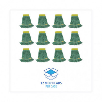 Super Loop Wet Mop Head, Cotton/Synthetic Fiber, 5" Headband, Small Size, Green, 12/Carton