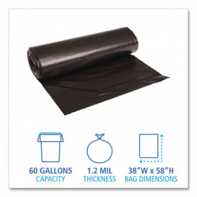Recycled Low-Density Polyethylene Can Liners, 60 gal, 1.2 mil, 38" x 58", Black, Perforated, 10 Bags/Roll, 10 Rolls/Carton