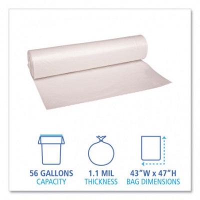 Recycled Low-Density Polyethylene Can Liners, 56 gal, 1.1 mil, 43" x 47", Clear, Perforated, 10 Bags/Roll, 10 Rolls/Carton