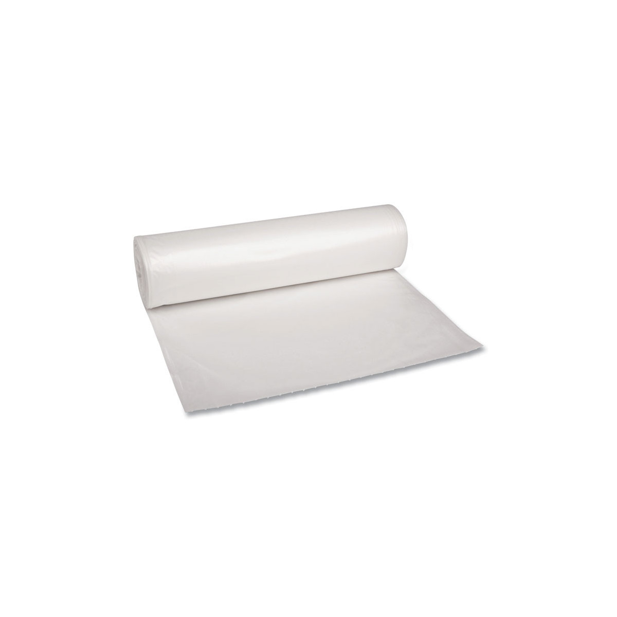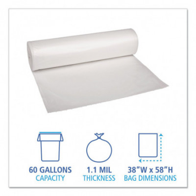 Recycled Low-Density Polyethylene Can Liners, 60 gal, 1.1 mil, 38" x 58", Clear, Perforated, 10 Bags/Roll, 10 Rolls/Carton