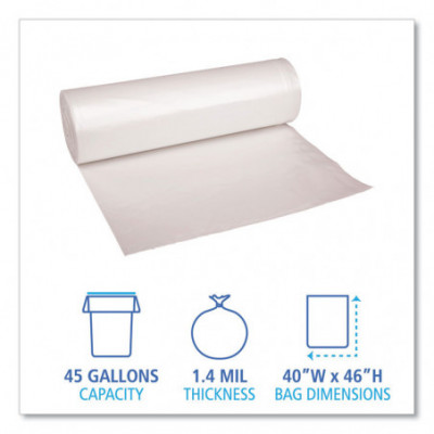 Recycled Low-Density Polyethylene Can Liners, 45 gal, 1.4 mil, 40" x 46", Clear, Perforated, 10 Bags/Roll, 10 Rolls/Carton
