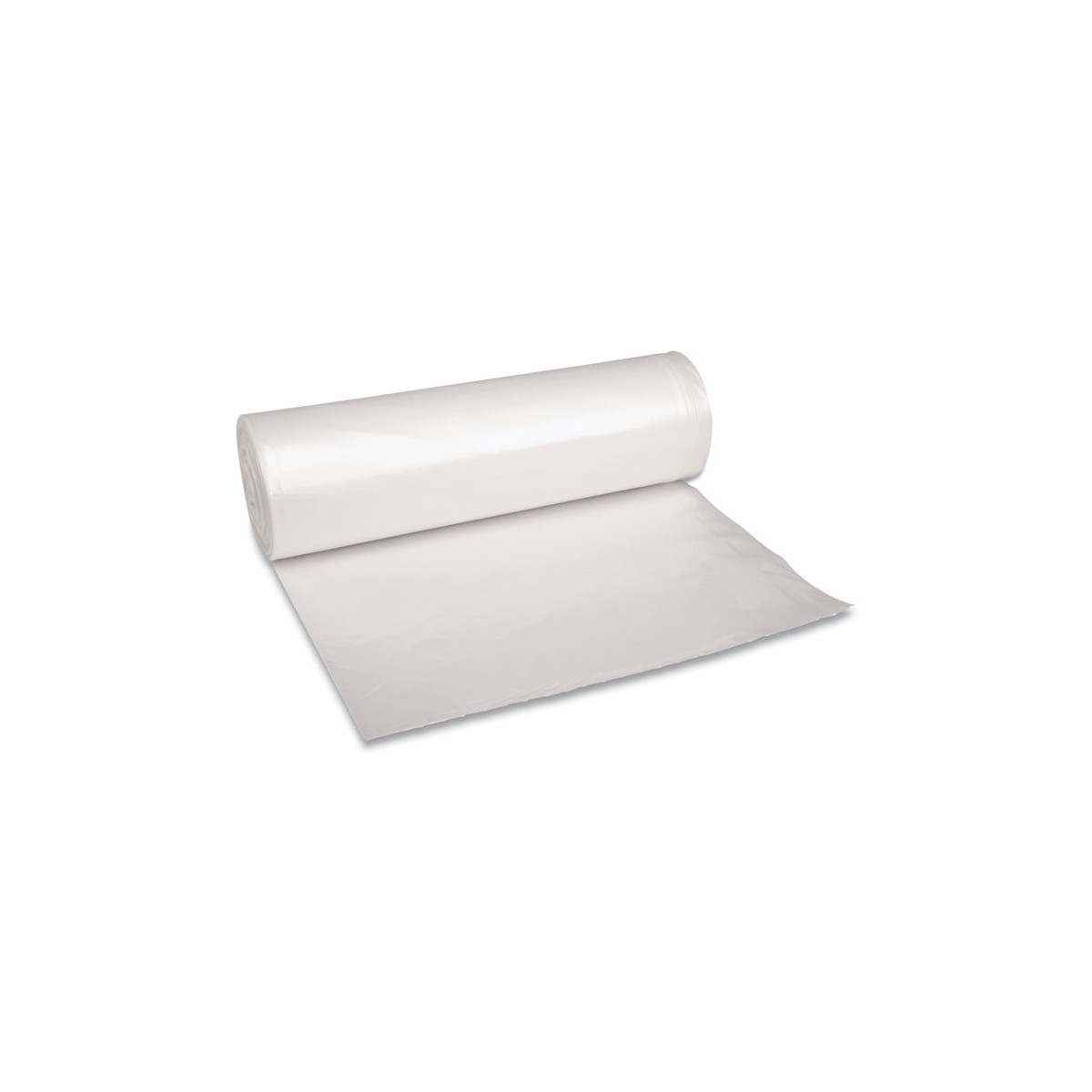 Can liner with equivalent strength of 2 mil liner. Perforated roll for easy dispensing. Coreless rolls save space and material.
