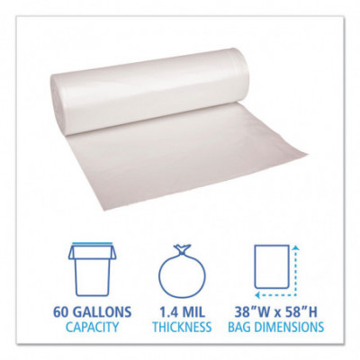 Recycled Low-Density Polyethylene Can Liners, 60 gal, 1.4 mil, 38" x 58", Clear, Perforated, 10 Bags/Roll, 10 Rolls/Carton