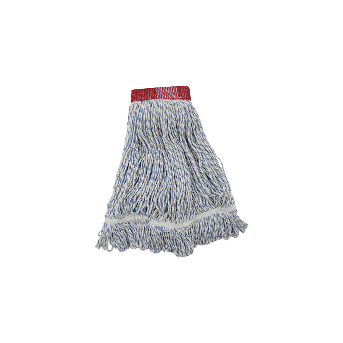 Floor Finish Mop Head, Wide, Rayon/Polyester, Large, White/Blue Stripes, 12/Carton