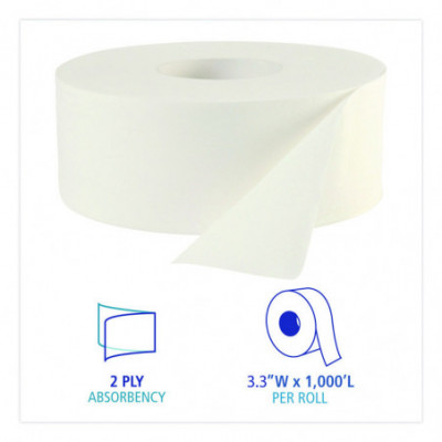 JRT Jumbo Roll Bathroom Tissue, Septic Safe, 2-Ply, 3.3" x 1,000 ft, White, 12 Rolls/Carton