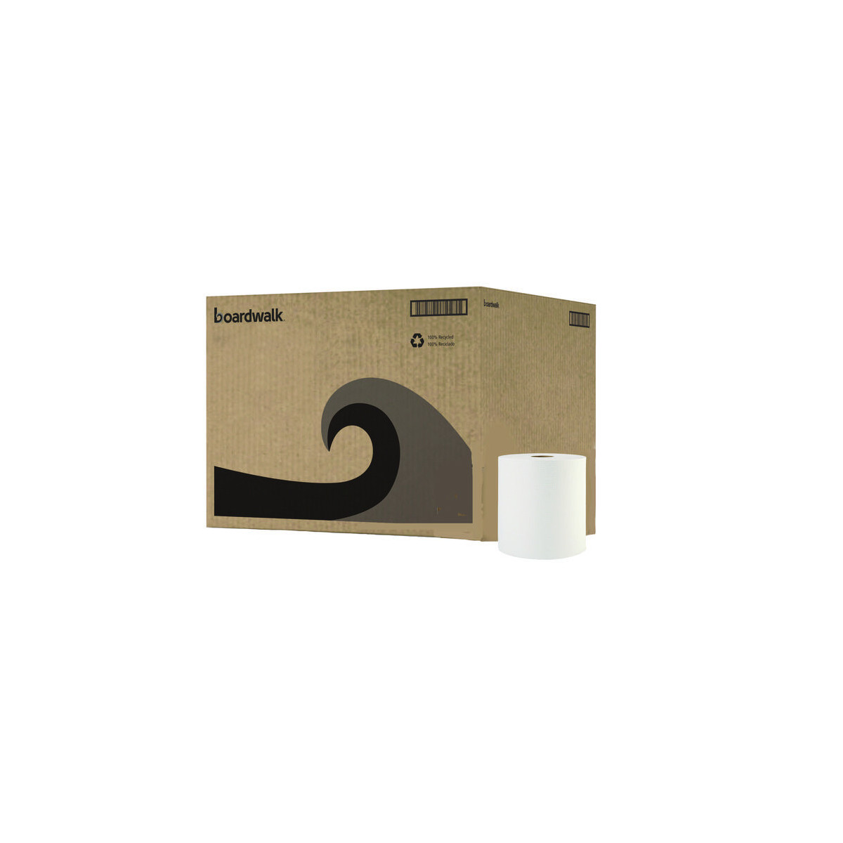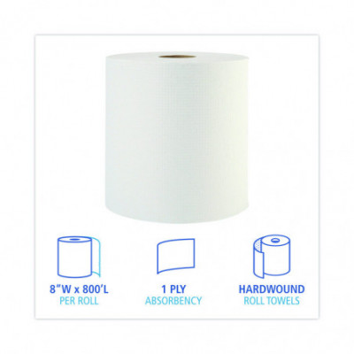 Boardwalk® White Paper Towel Rolls are one-ply paper towels that are hardwound in rolls without perforations. Durable and absorbent material for hand drying in commercial washrooms with heavy traffic. Bleached white and slightly textured. Easy to grab and compatible with dispensers, which are sold separately. Great for frequent hand washing in offices, industrial settings, schools, healthcare, restaurants, public restrooms, and kitchens.