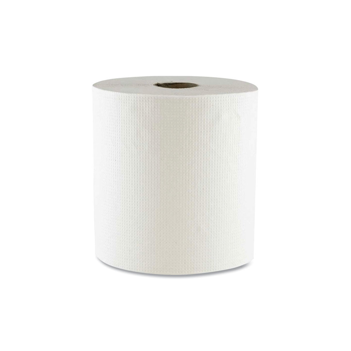 Premium quality hardwound roll towel with high brightness and strong feel. This product is built with wet strength technology for easy dispensing without tearing, when used with wet hands. Suitable for all standard dispensers with a universal core for easy installation. Each roll is embossed with a decorative pattern for a premium presentation and made with a high fiber content for fast absorption and drying.