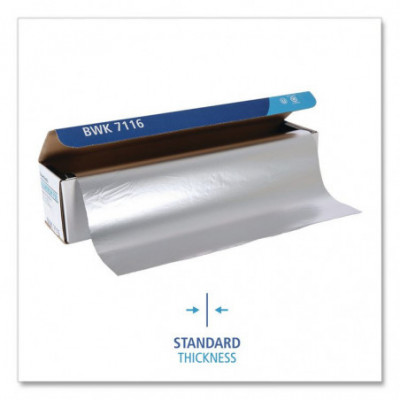 Boardwalk® Standard Aluminum Foil Roll is high-quality aluminum foil with greater strength than standard rolls. Designed for heavy use with durable and tough foil that doesn't easily tear during use. 16-micron thickness is good for medium-level endurance. Foil conveniently comes in a continuous roll in a self-enclosing box, equipped with a tearing edge with standard cutting edges. Great for food service, cafeterias, restaurants, catering, and carry-out providers.