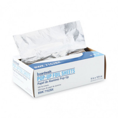 Boardwalk® Aluminum Foil Pop-Up Sheets are conveniently dispensed, one at a time. Easy to grab and easy to wrap, these foil pop-up sheets make regular foil use faster and easier. Self-dispensing box with no tear required. Each sheet is perfectly sized for common uses in food service, catering, restaurants, and carry-out providers. Use less waste by only grabbing what's needed and not damaging while tearing traditional rolls.