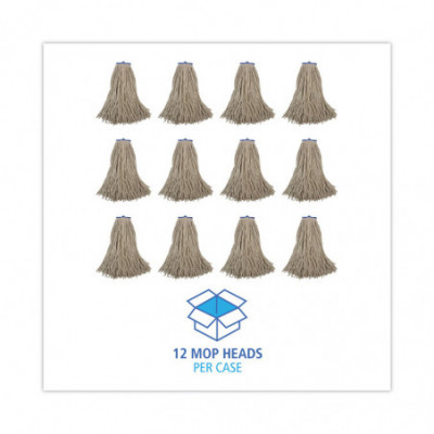 Cut-End Lie-Flat Wet Mop Head, Cotton, 24 oz, White, 12/Carton