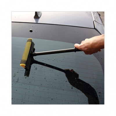 A convenient two-in-one tool that's ideal for cleaning windows. Constructed with an 8" synthetic sponge head that's covered in nylon mesh for abrasive scrubbing and added durability. Use with window washing cleaner to remove dirt and grime. When you're finished scrubbing, simply rotate the squeegee to wipe it clean. The black, rubber blade propels water down without streaks. Built with a sturdy, wipeable handle.