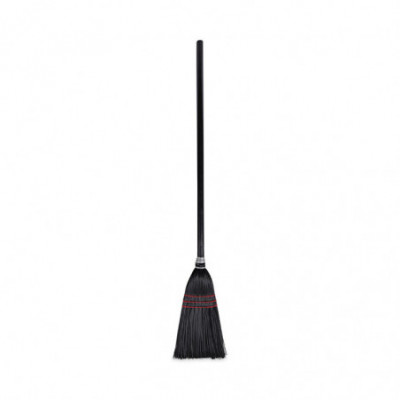 Convenient parlor broom that's ideal for light-duty sweeping on hard floors. Constructed with stiff, natural, corn fiber bristles that are tightly secured to the handle with metal wire. An ideal, sturdy broom for sweeping concrete and other rough floor surfaces. Solid wood handle that's lacquered to prevent splintering and blistering. Five rows of stitching provide added durability for lasting use.