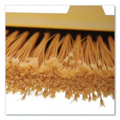 Big 13" sweeping surface with sturdy flagged-tip plastic bristles. Angled cut for sweeping corners, edges and under counters. Lacquered wood handle with plastic angled shroud.